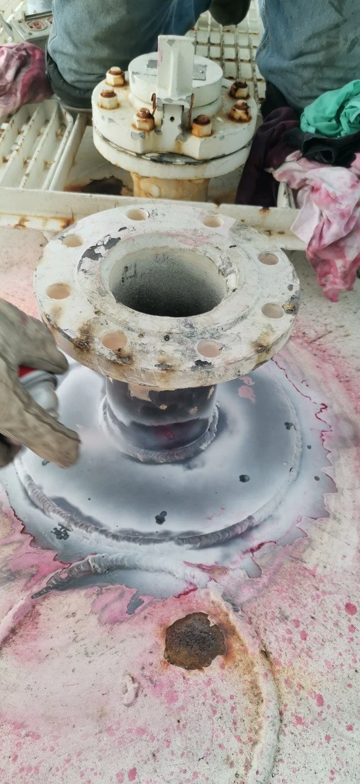 Proceso de intervención y reparación mediante soldadura en tanques de combustible de aviación es una fase crítica que solo ocurre tras la desgasificación total del equipo. Antes y durante el proceso de soldadura, se observa la aplicación de técnicas para garantizar la integridad estructural: Limpieza mecánica, líquidos penetrantes.