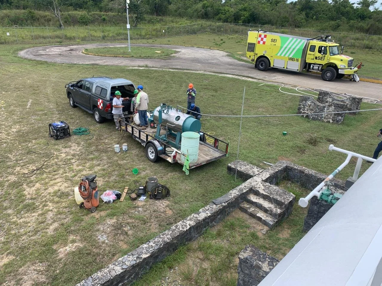 El proceso de vaporización y desgasificación de tanques de combustible de aviación es un procedimiento crítico para garantizar una atmósfera segura antes de realizar trabajos en caliente o ingresos a espacios confinado, en la imagen se observa una unidad de vaporización, el objetivo técnico es la eliminación de líquidos residuales y vapores inflamables del tanque.